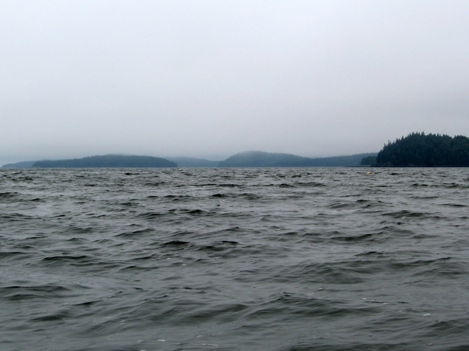 The day started bright and sunny but by the time we reached our put-in it had socked in and was totally overcast with mist on the water which greatly reduced visibility. My intention had been to travel NE between Bare island and Clamshell Cove but a quick scan with binoculars showed a sandbar effectively closing that route at low tide so walking east to higher ground I checked to make sure the channel south of Bar island was in fact still open. It was!